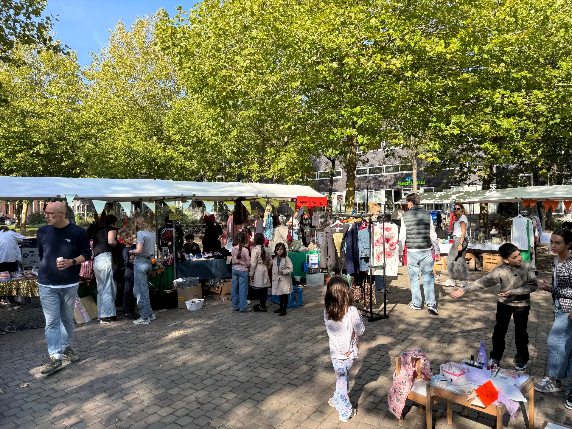 - 80 verkoopkramen, gratis spullenhoek, reparatie café, creatieve workshops, eten en drinken en een springkussen